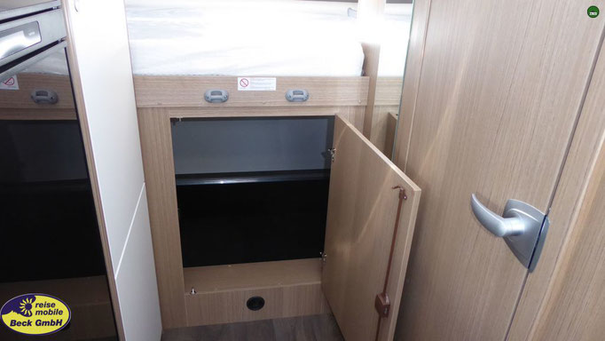 - Kühlschrank wird automatisch mit Gas, Strom oder 12V (während der Fahrt) betrieben